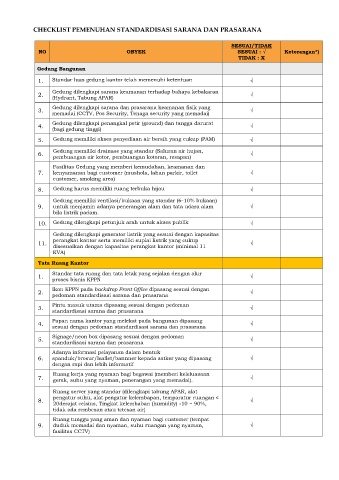 CHECKLIST PEMENUHAN STANDARDISASI SARANA DAN PRASARANA