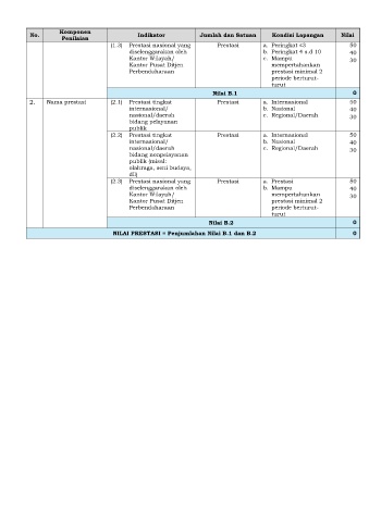 NILAI PRESTASI = Penjumlahan Nilai B.1 dan B.2 0