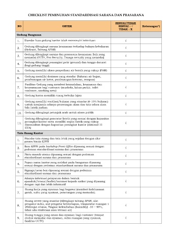 CHECKLIST PEMENUHAN STANDARDISASI SARANA DAN PRASARANA