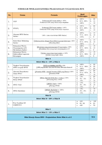 Nilai Kinerja Kuasa BUN = Penjumlahan Bobot Nilai A s.d C N/A