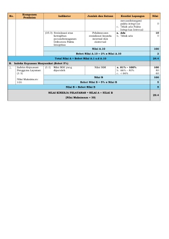 NILAI KINERJA PELAYANAN = NILAI A + NILAI B