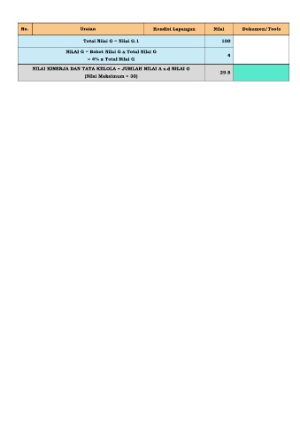 No.                     Uraian                       Kondisi Lapangan        Nilai      Dokumen/Tools