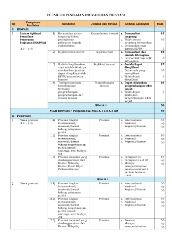 FORMULIR PENILAIAN INOVASI DAN PRESTASI