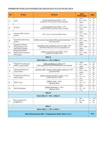Nilai Kinerja Kuasa BUN = Penjumlahan Bobot Nilai A s.d C N/A