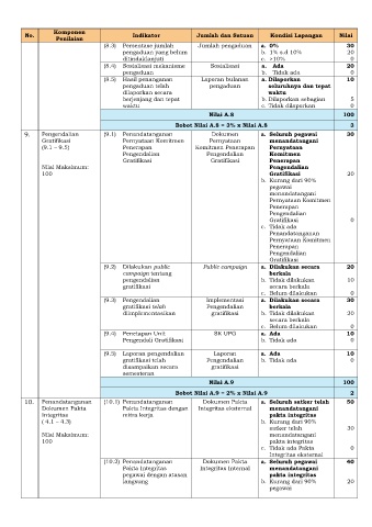 No. Indikator Jumlah dan Satuan Kondisi Lapangan Nilai