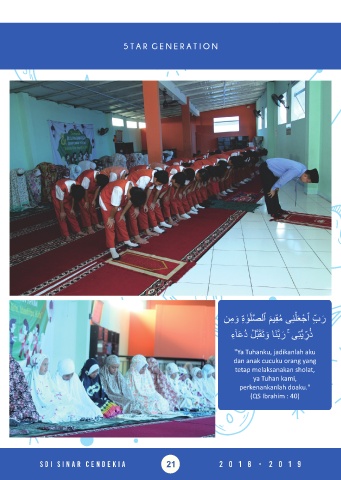 5 T A R 5 T A R G E N E R A T I O N "Ya Tuhanku, jadikanlah aku dan anak cucuku orang yang tetap melaksanakan sholat, ya Tuhan kami, perkenankanlah doaku." (QS Ibrahim : 40) S d i S I N A R C E N D E K I A 21 2 0 1 8 - 2 0 1 9