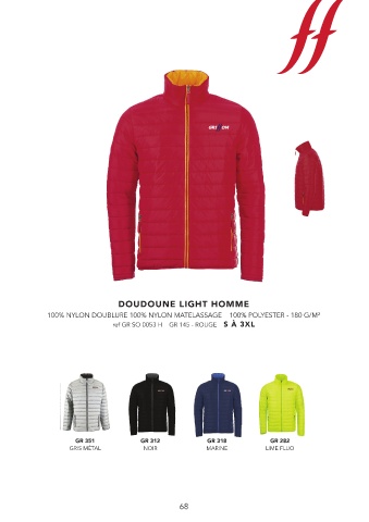 DOUDOUNE LIGHT HOMME 100% NYLON DOUBLURE 100% NYLON MATELASSAGE 100% POLYESTER - 180 G/M² ref GR SO 0053 H GR 145 - ROUGE S À 3XL GR 351 GR 312 GR 318 GR 282 GRIS MÉTAL NOIR MARINE LIME FLUO 68