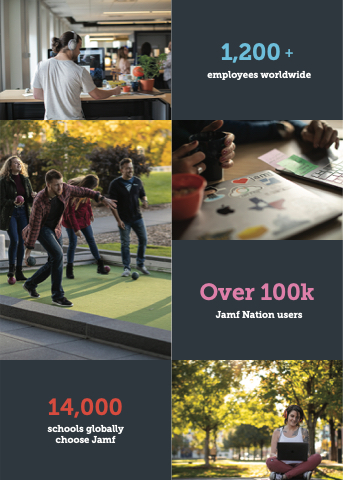1,200 + employees worldwide Over 100k Jamf Nation users 14,000 schools globally choose Jamf