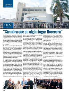 En palabras de la Presidente del Directorio, en lo lejano, en el mundo, en otros continen- que tuvo la UCSF en el Consejo Universita-