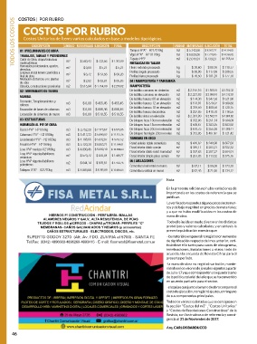Limpieza inicial terreno; periódica y m2 $ 6,72 $ 53,56 $ 60,28 Perfiles ángulo procesado kg $ 88,86 $ 117,69 $ 206,55 m2 $ 585,57 $ 370,27 $ 955,83 c/aislac.hidráulica