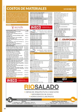 TODOS LOS COSTOS COSTOS DE MATERIALES $10.500,00 Cielorrasos x 20 lts. NOVIEMBRE 2017 NOVIEMBRE 2017 $42.000,00 Inodoro Corto Andino Bl $ 1.261,11 INROTS MATERIALES | COSTOS TODOS LOS COSTOS