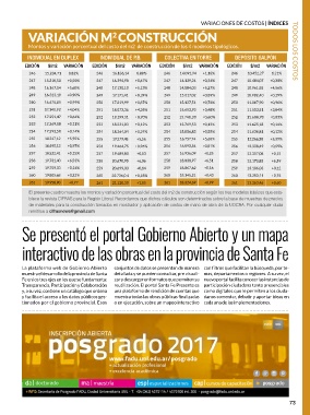 COSTO DE CONSTRUCCIÓN 191,20 0,90% 25,52% tipo de obra de arquitectura. Su uso Transparencia, Participación y Colaboración reutilización. El portal Santa Fe Presente es participación ciudadana tanto presenciales