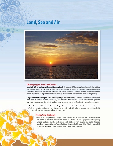 sun toward Marigot Bay. Shortly after sunset you’ll dock at Marigot Bay to dine at the esteemed