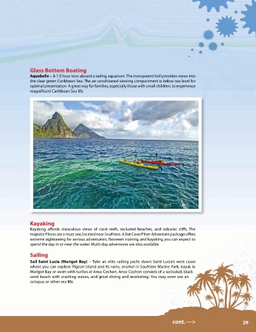 ship seen in Pirates of the Caribbean, and sail into the sunset. Snacks and champagne are Kayaking affords miraculous views of coral reefs, secluded beaches, and volcanic cliffs. The