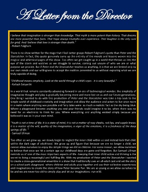 simple world of childhood creativity and imagination and allow the audience and actors to live once more
