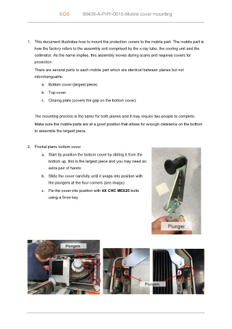 1. This document illustrates how to mount the protection covers to the mobile part. The mobile part is