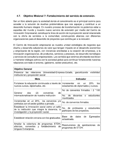 4.7. Objetivo Misional 7: Fortalecimiento del servicio de extensión.