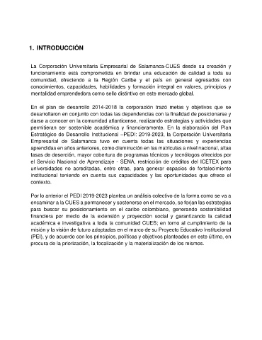 Estratégico de Desarrollo Institucional –PEDI: 2019-2023, la Corporación Universitaria