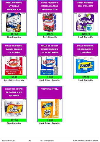 Distribuidora P.R.O. 42 Tel.: 0351-458-8927 E-Mail: distribuidorapro@hotmail.com