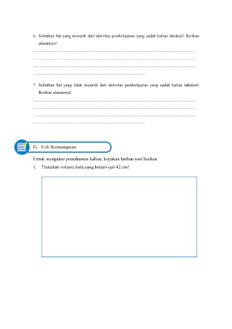 7. Sebutkan hal yang tidak menarik dari aktivitas pembelajaran yang sudah kalian lakukan!
