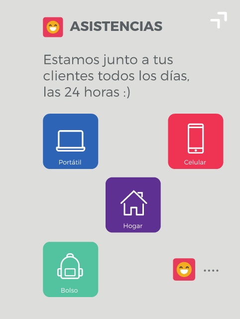 ASISTENCIAS Estamos junto a tus clientes todos los días, las 24 horas :) Portátil Celular Hogar Bolso 4