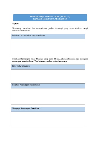 Tuliskan Rancangan Solar Charger yang akan dibuat, jelaskan fiturnya dan mengapa
