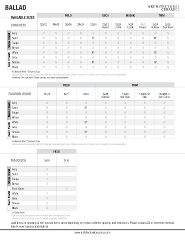 Italicized items are special order from Italy with extended lead times. Please consult an ACI sales rep for sample & product availability.