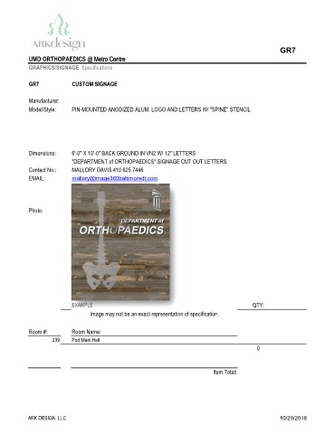 Model/Style: PIN-MOUNTED ANODIZED ALUM. LOGO AND LETTERS W/ "SPINE" STENCIL
