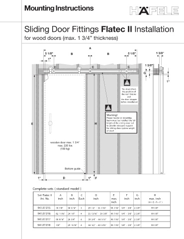 1 Set sliding door fittings Flatec II Attention Installation instructions