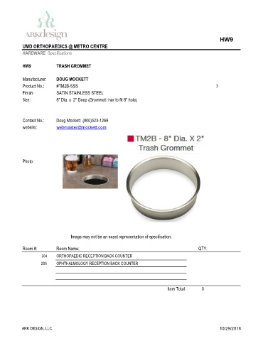 Size: 8" Dia. x 2" Deep (Grommet liner to fit 8" hole)