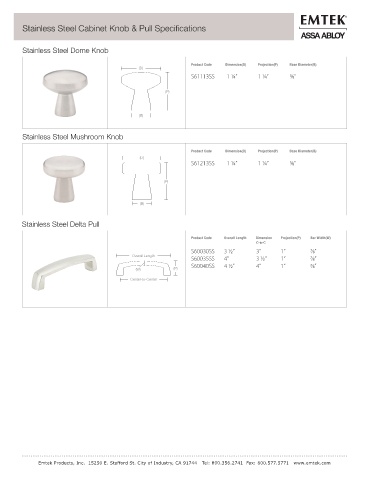 Stainless Steel Cabinet Knob & Pull Specifications