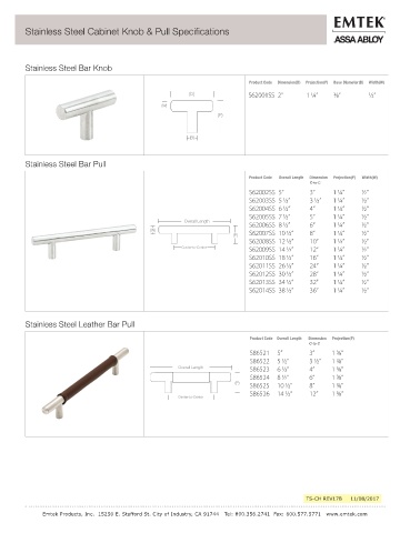 Stainless Steel Cabinet Knob & Pull Specifications
