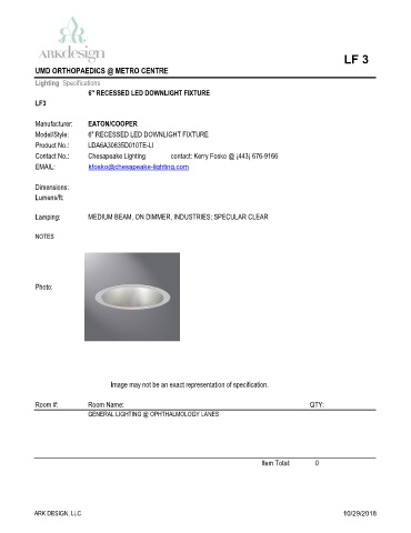 Contact No.: Chesapeake Lighting contact: Kerry Fosko @ (443) 676-9166
