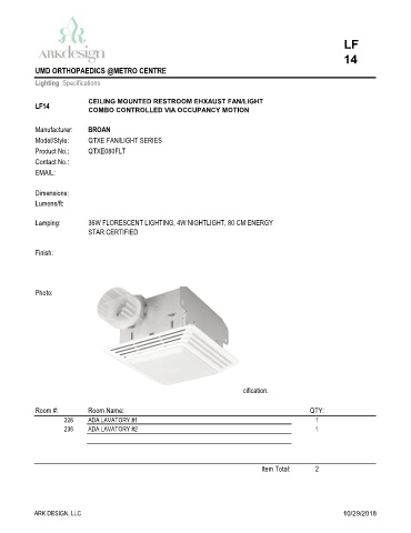 CEILING MOUNTED RESTROOM EHXAUST FAN/LIGHT