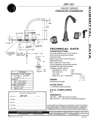 MODEL NO.:________________________________________QTY: _________ JWF-200 = JWF-201 w/o hose & spray