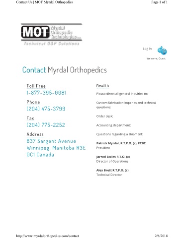 Contact Us | MOT Myrdal Orthopedics Page 1 of 1
