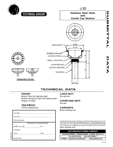THE COMPLETE LINE OF JUST SINKS, FAUCETS AND DRAINS, VISIT OUR WEB SITE AT