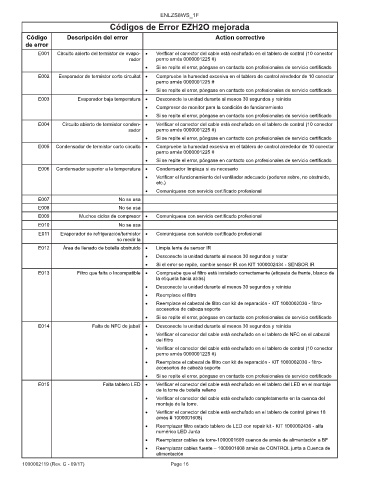 E002 Evaporador de termistor corto circuitot • Compruebe la humedad excesiva en el tablero de control alrededor de 10 conector