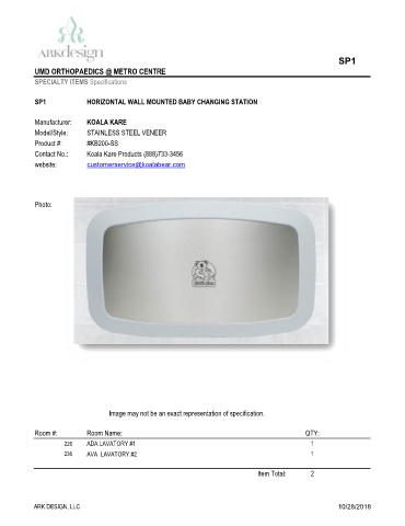 SP1 HORIZONTAL WALL MOUNTED BABY CHANGING STATION