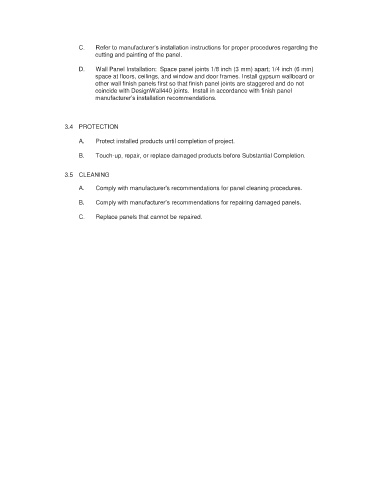 D. Wall Panel Installation: Space panel joints 1/8 inch (3 mm) apart; 1/4 inch (6 mm)