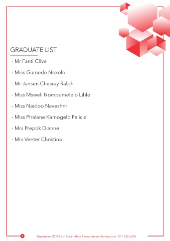 6          Graduation 2019 | Esri South Africa | www.esri-southafrica.com | 011 238 6300
