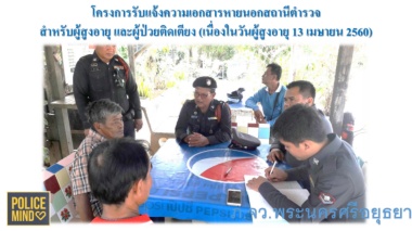 โครงการรับแจ้งความเอกสารหายนอกสถานีต ารวจ ส าหรับผู้สูงอายุ และผู้ป่ วยติดเตียง (เนื่องในวันผู้สูงอายุ 13 เมษายน 2560) ภ.จว.พระนครศรีอยุธยา 6