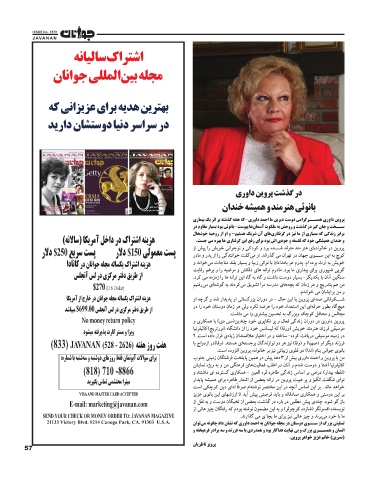 SEND YOUR CHECK OR MONEY ORDER TO: JAVANAN MAGAZINE .دنراذگ یم ی اجب ام یارب زین یئاه زیچ و دنرب یم دوخ اب ام
