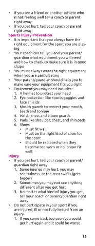 • If you get hurt, tell your coach or parent/