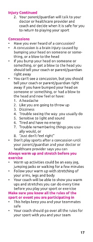 • Don’t play sports after a concussion until