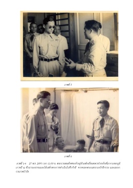 ภาพที่ 5 ภาพที่ 6 ภาพที่ 1-6 27 พ.ย. 2495 เวลา 11.00 น. พระบาทสมเด็จพระเจ้าอยู่หัวเสด็จเยี่ยมทหารป่วยเจ็บที่มาจากสมรภูมิ เกาหลี ณ ตึกมานะธรรมและได้เสด็จพระราชด าเนินไปตึกรังสี ทรงทอดพระเนตรกองรังสีกรรม และแผนก กายภาพบ าบัด