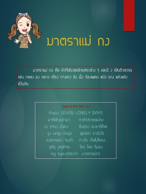 มาตราแม่ กง คือ ค าที่ประสมด้วยสระต่าง ๆ และมี ง เป็นตัวสะกด