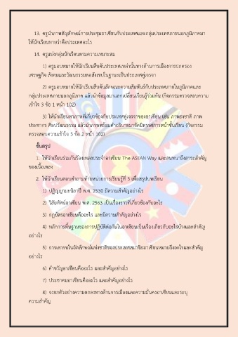 1. ให้นักเรียนร่วมกันร้องเพลงประจ ำอำเซียน The ASEAN Way และสนทนำถึงสำระส ำคัญ