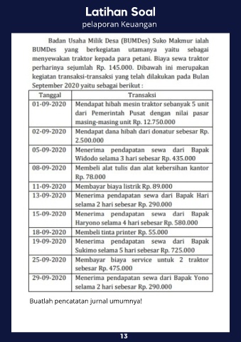 Latihan Soal pelaporan Keuangan Buatlah pencatatan jurnal umumnya! 13