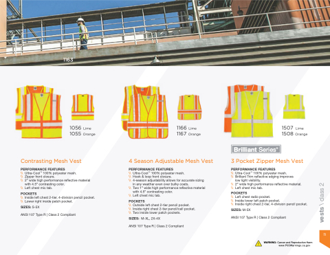 \\ \\ Ultra-CoolTM 100% polyester mesh \\ \\ \\ Zipper front closure \\ \\ 2” wide high performance reflective material with 4 5” contrasting color \\ Left chest mic tab POCKETS